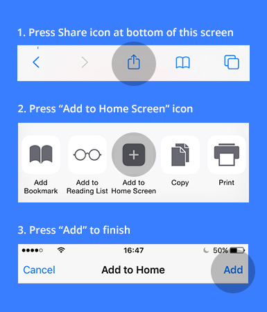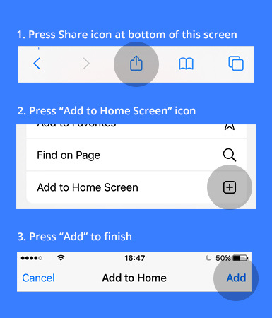 Instructions to Add to Home Screen